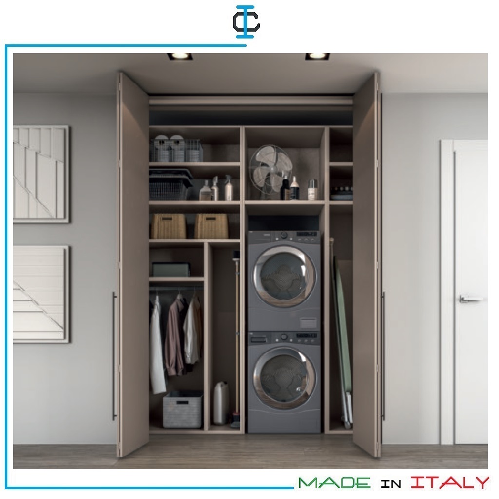 Armadio in Nicchia Lavanderia . Armadio composto da : 1 armadio con ripiani, 1 porta lavatrice, porta asse da stiro, porte a soffietto.